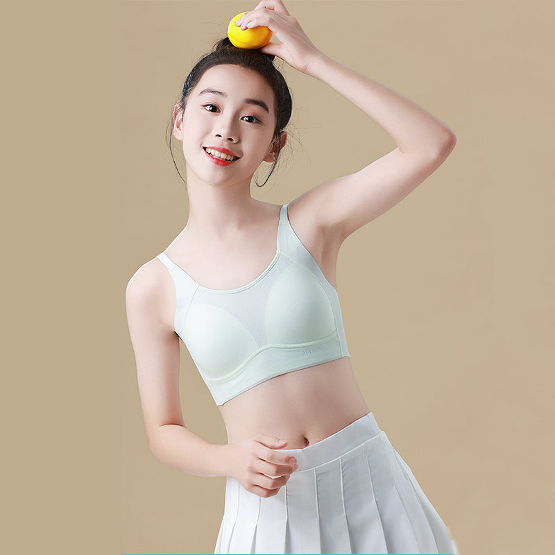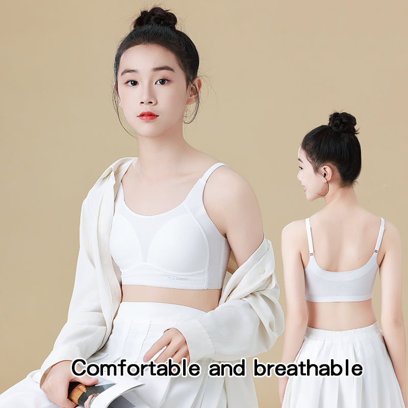 The Melissa Camisole Bra is designed for growing girls aged 8–15, offering breathable, wireless support during all stages of development. Featuring a soft vest-style design with adjustable shoulder straps, this bra is constructed from a flexible nylon-spandex blend and lined with viscose and mulberry silk for a silky touch. The full cup with silk padding ensures protection and comfort during school or activity, while the pull-over design makes it easy to wear for young girls. A gentle, stylish first bra — no clasps, no wires, just pure softness and security. Available for wholesale and retail.